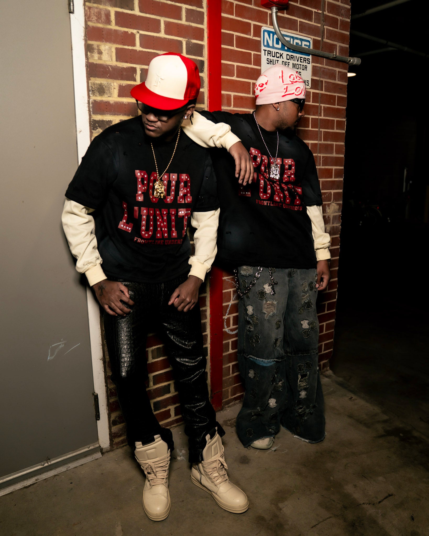 Screen print “POUR L’UNITÉ” design topped with gemstones
